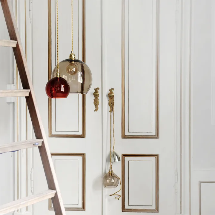 Modernes Industriedesign! Die Rowan Pendelleuchte von Ebb & Flow verbreitet das Licht durch einen 22cm im Durchmesser messenden, mundgeblasenen Glaskorpus, der in verschiedenen Tönungen wählbar ist. Das notwendige Übel jeder Leuchte - Lampenfassung und Aufhängung - fungieren bei diesem Designstück aus Dänemark als besonderes Stilelement.