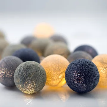 Die Irislights in der Variante "Breeze" sind dekorative Lichterkugeln aus Baumwolle, die in verschiedenen blau-gelb-grau dominierten Farbtönen erleuchten. Diese schönen Lichterketten sind mit 20 oder 35 leuchtenden Kugeln bestellbar, und machen sich besonders gut am Fensterbrett, auf Regalen, oder als besonders stylische Deko an der Wand.