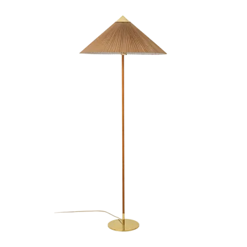 9602 Stehleuchte von GUBI ist ein zeitloser Designklassiker, entworfen vom finnischen Designer Paavo Tynell im Jahr 1935. Die Leuchte ist auch unter dem Spitznamen Chinese Hat bekannt, dank des eleganten, konischen Lampenschirms, der ein weiches und angenehmes Licht verbreitet. Die Stehleuchte kombiniert einen schönen Messingfuß mit einem schlichten Gestell aus Rattan, was ein natürliches und warmes Gefühl vermittelt und perfekt in moderne Wohnräume passt. Das vielseitige Design macht die 9602 ideal sowohl als Leselampe im Wohnzimmer als auch als zusätzliche Beleuchtung am Schreibtisch. Mit ihrer zeitlosen Formensprache, den echten Materialwahl und hoher handwerklicher Qualität vereint diese Leuchte Funktion und Ästhetik auf beste Weise. Eine elegante Stehleuchte von GUBI, die sowohl klassische als auch zeitgenössische Interieurs aufwertet.