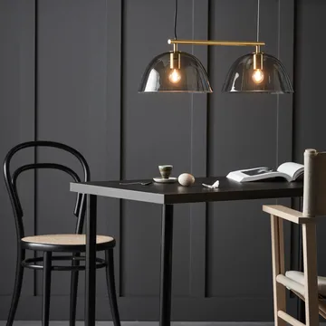 Wendo 70 ceiling lamp smoke-coloured glass from CO Bankeryd is an elegant pendant designed by Monika Mulder. The lamp features two glass shades and a metal rail that provides balanced, soft lighting, with the smoke-coloured glass diffusing the light for a warm and inviting atmosphere. Perfect over the dining table or kitchen island to create a pleasant ambiance for dinners and socializing. Easy to install and simple to combine with other furnishings for a personal home.
