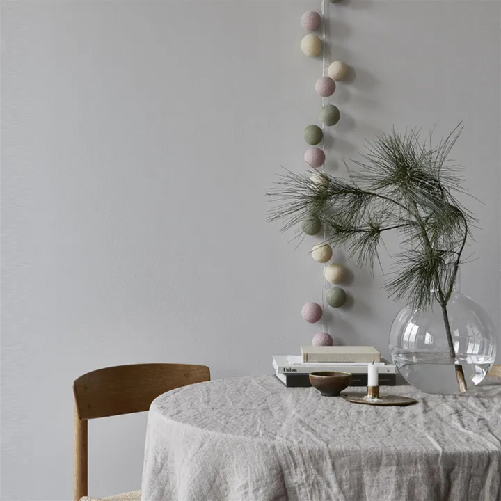 The Dune lights from the Swedish brand Irislights is a wonderful combination of pastel tones. The loop consists of hand-made balls in light green, pale pink and beige that release the light from the LED loop.