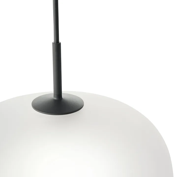 Rime pendant lamp Ø25 cm from Muuto is a softly shaped ceiling lamp from the Rime collection, designed by TAF. The mouth-blown, semi-transparent glass surface with a sandblasted finish provides a warm, muted glow and a subtle tactile feel that enhances the room without overpowering it. The lamp’s powder-coated aluminum fitting and matching cord create a simple, thoughtful expression that works just as well over the dining table as in a reading nook. A timeless pendant that makes it easy to create atmosphere and beautiful lighting in the home.