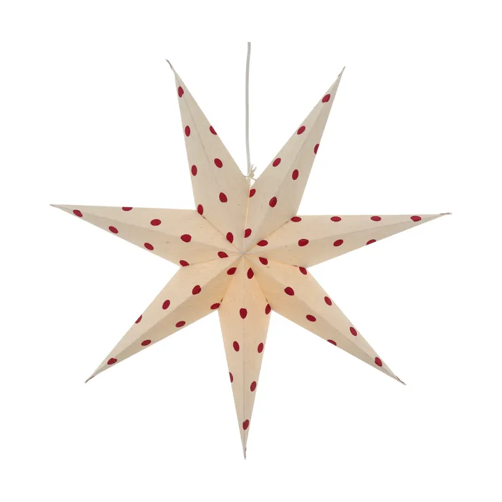 Bare advent star white-red dots from Swedish Scandi Living is a simple and stylish star made of paper covered with dotted fabric in a linen look. The large paper star has an elegant and classic design language and spreads a warm and atmospheric light. Place the advent star in the window so both you and those passing by can enjoy the magic glow of the paper star.