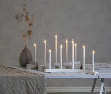 Accent advent candlestick from Star Trading is a stylish bow-shaped wooden electric candlestick with five metal candle holders. Display the advent candlestick on the windowsill or side table. The simple design looks lovely with all types of styles and Christmas decorations. The Accent wooden candlestick spreads an atmospheric light and adds a lovely touch of Christmas magic to your home.