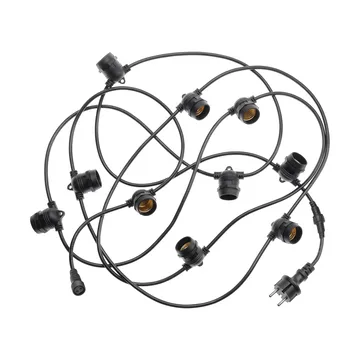Outdoor connectable string lights from Unison are durable, 100% rubber string lights that create atmospheric outdoor lighting year-round. The weather-resistant IP44 construction makes them suitable for the garden, balcony, and patio. E27 sockets let you choose light sources to match your preferred style and brightness. The strand has lamp holders spaced 50 cm apart and can be extended modularly up to 200 meters. A flexible solution for everyday use and parties, providing a warm and inviting glow.