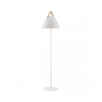 Strap är en snygg golvlampa i en industriell design. Lampan är utsmyckad med ett dekorativt hänge i läder som bryter av och smälter in snyggt. Du väljer själv om du vill ha den bruna eller det svarta läderhänget (båda kommer med i paketet). Lampan passar perfekt för att belysa det tomma hörnet i vardagsrummet, eller för att placera bakom soffan.