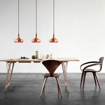 Orient P1 pendel från Fritz Hansen är en stilfull ljuskälla designad av Jo Hammerborg 1963. Tillverkad av högkvalitativ koppar och rosenträ, ger denna ikoniska lampa ett behagligt ljus och fångar essensen av 60- och 70-talets belysningskonst. År 2013 återintroducerades Orient av Lightyears i samarbete med Hammerborgs familj, vilket hyllar dess tidlösa formgivning och fortsätter att imponera i moderna hem.