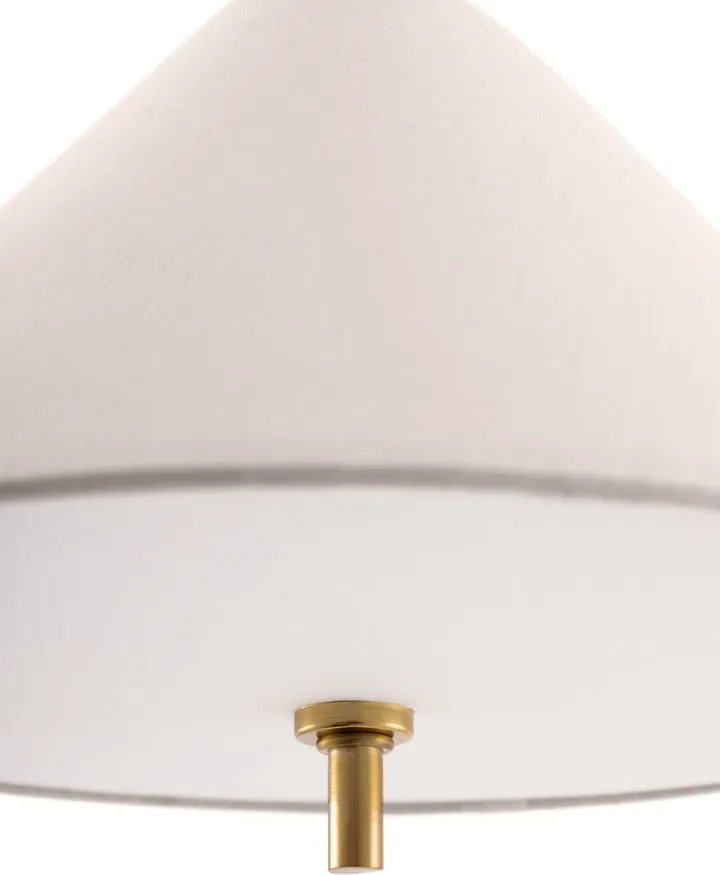 Iris pendel 50 från Globen Lighting har en handgjord skärm i bomull som tillsammans med eleganta mässingsdetaljer skapar ett mjukt och harmoniskt uttryck. Den dolda ljuskällan bakom ett bländskydd i bomull sprider ett behagligt sken, perfekt över matbordet eller i sovrummet. Med sin pärlemorfärgade textilkabel blir lampan ett vackert smycke i rummet – lika dekorativ som funktionell.