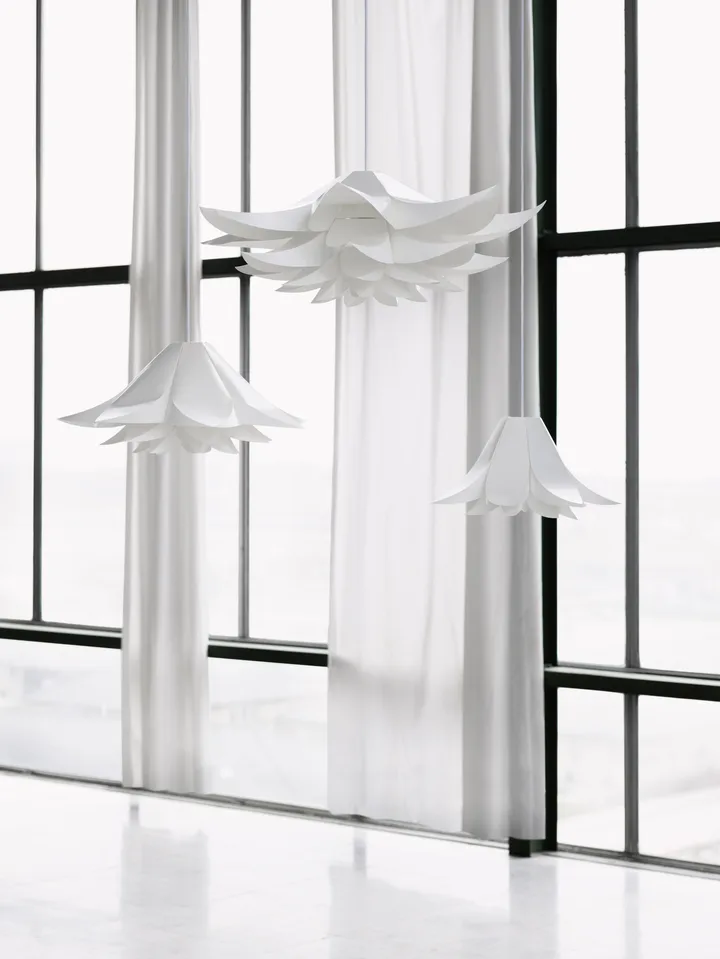 Norm 06 är en vacker lampskärm formgiven av Simon Karkov för Normann Copenhagen. Den skulpturala designen på lampskärmen är inspirerad av vattenliljor och sprider ett mjukt ljus i rummet. Norm 06 passar lika bra i sovrummet som över köksbordet. Lampskärmen levereras omonterad och de olika delarna sätts ihop utan lim eller verktyg. Komplettera med lamphållare och sladd.