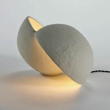 Earth bordslampa från Serax är både en skulptur och lampa i ett. Lampan Earth är tillverkad av papier-maché vilket ger den en rustik och ojämn struktur som förstärks när skenet från ljuskällan studsar på ytan. Den sfäriska konstruktionen gör att bordslampan är lika vacker tänd som släckt.